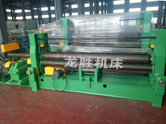 該機屬于液壓型三輥卷板機,用于常溫狀態(tài)下將各種容器用碳鋼、低合金鋼一次上料后不需調(diào)頭即完成板材端部預(yù)彎、卷圓和矯圓等工序。