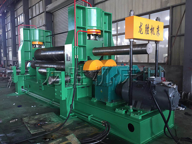 該機屬于液壓型三輥卷板機,用于常溫狀態下將各種容器用碳鋼、低合金鋼一次上料后不需調頭即完成板材端部預彎、卷圓和矯圓等工序。